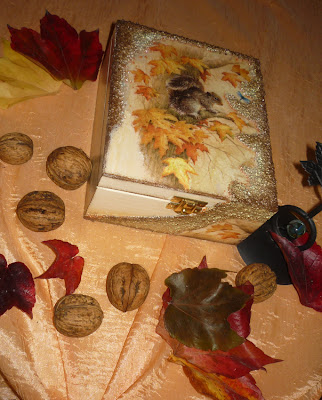 Czterokomorowe pudełko- herbaciarka w jesiennym stylu: